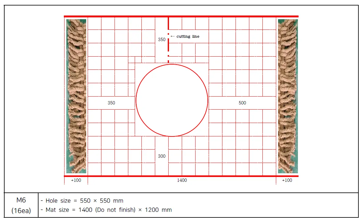 가로수 보호매트는 '수요기관 규격' 제품으로 가로수 '칸', 경계석 내측 규격에 맞춤 제작합니다.