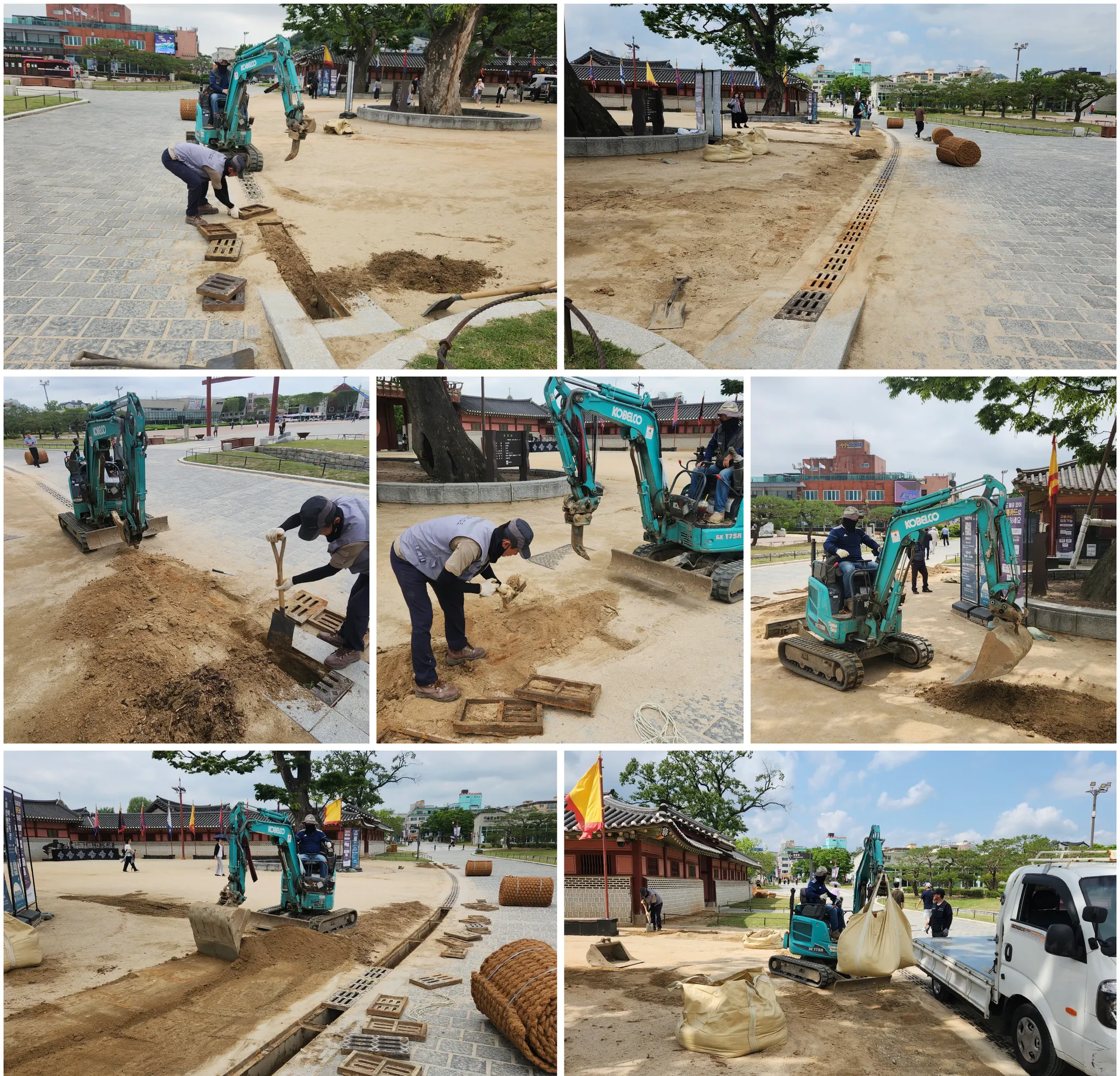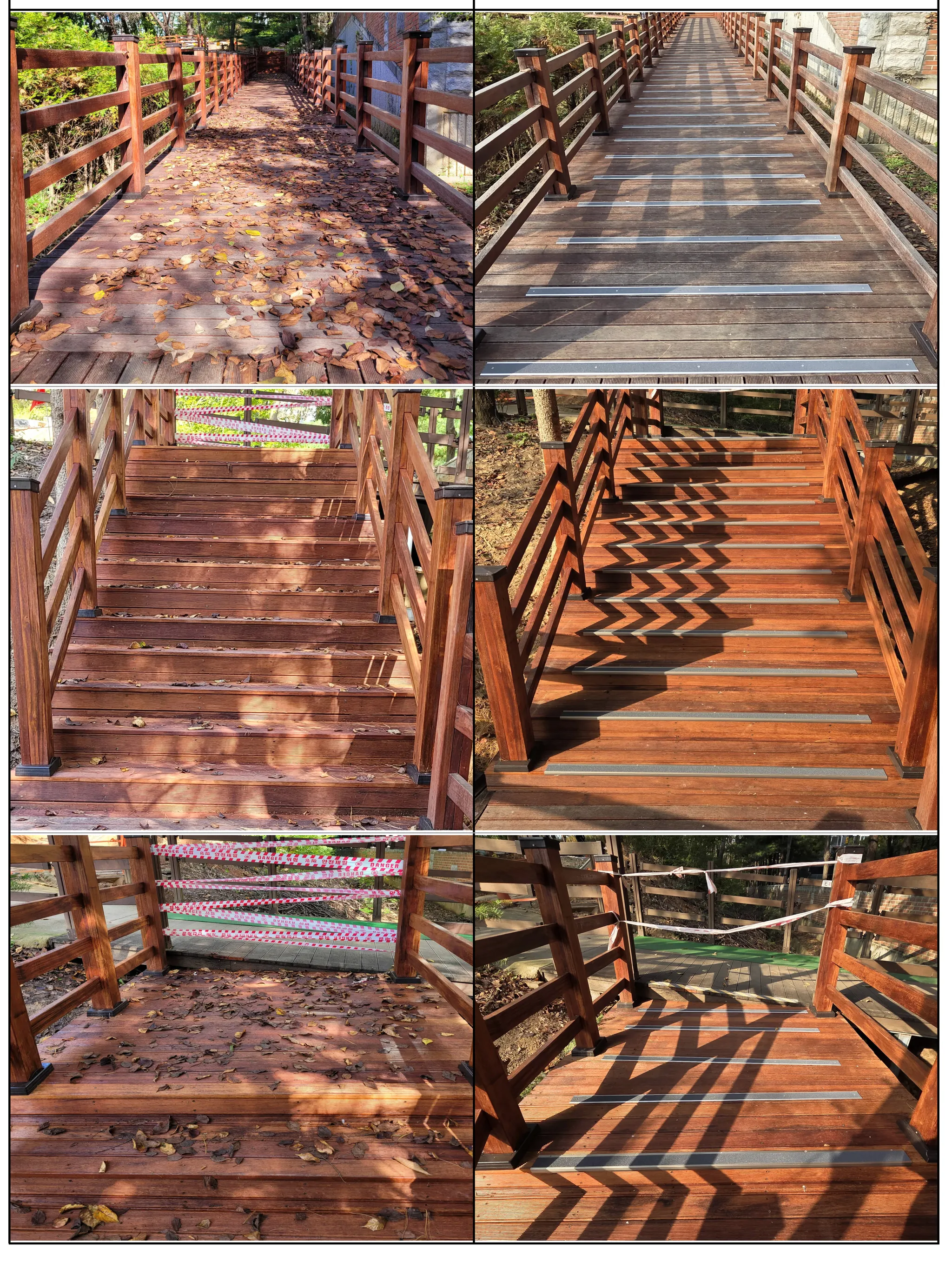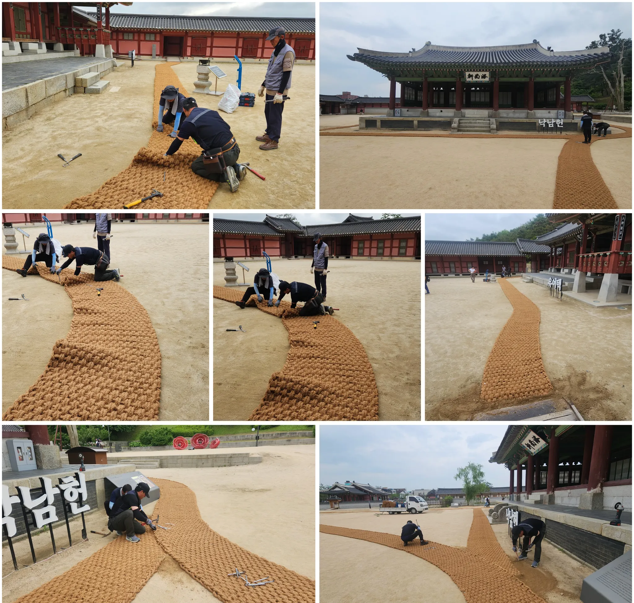 단차와 굴곡없는 산책로 구축을 위해서는 매트 설치 전, 지반정리가 중요합니다.